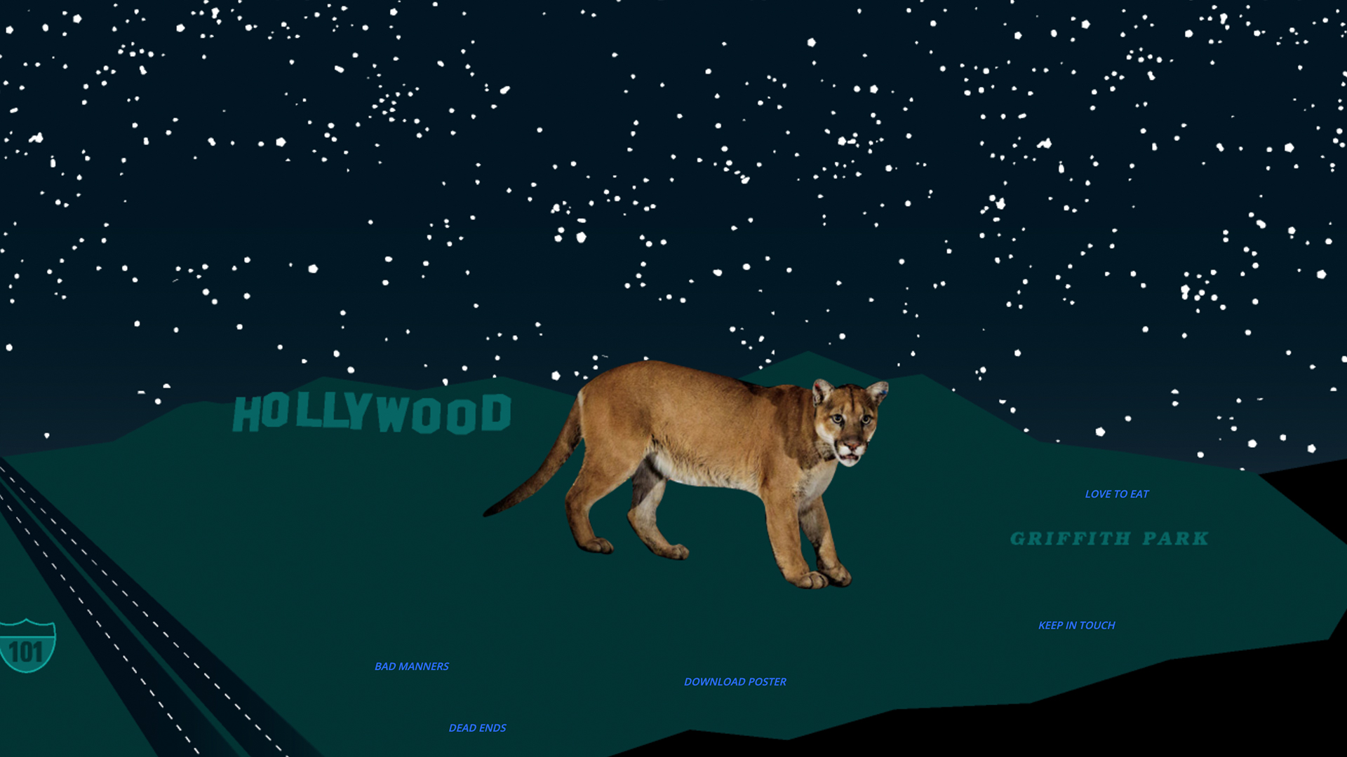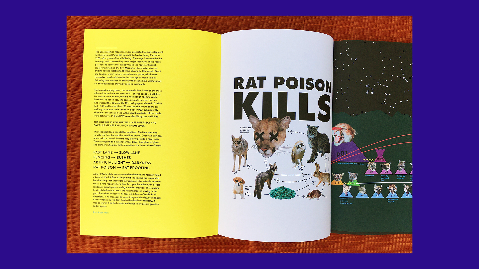 A website showing the tangled family tree of Los Angeles' resident mountain lions. Included in Kulturfolger Magazine Issue #1 with an accompanying essay. Featured in the book Carnivore Minds and covered by KPCC public radio. Presented at the Balance/Unbalance, A Sense of Place conference in Plymouth, England.